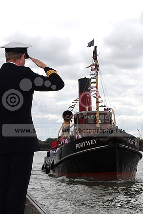 Portwey 90 yr old Steam Tug takes Royal Navy salute 22